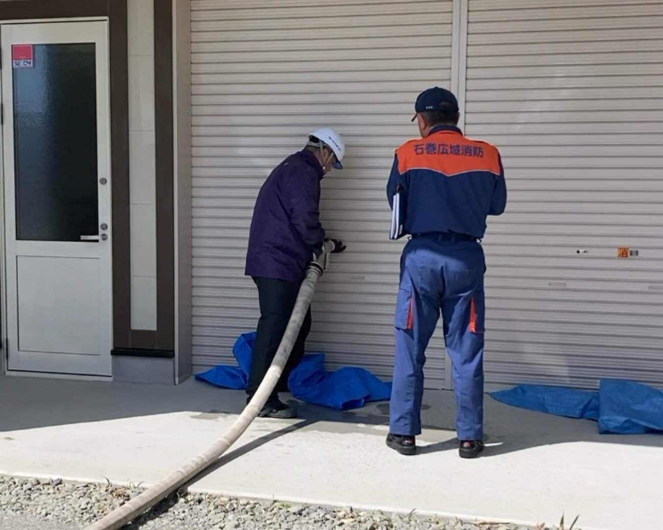 先日無事に石巻市内就労施設の引き渡しが完了しシャッターの水圧解錠検査を実施しました。